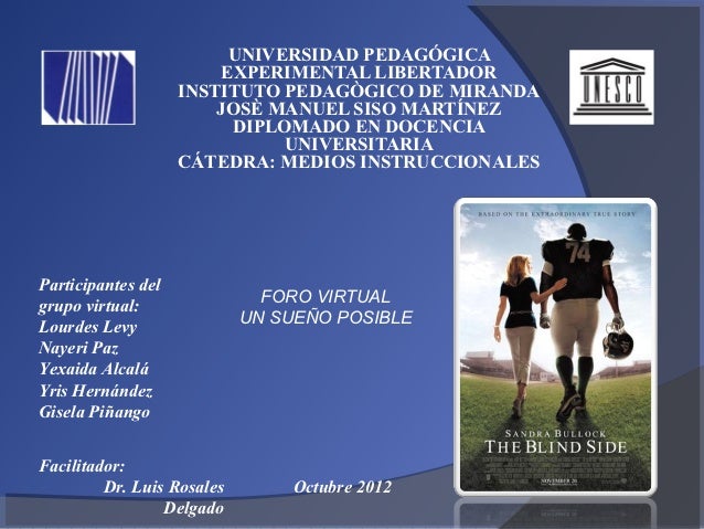 Se trata de una película dramática inspirada en hechos reales y protagonizada por la reconocida actriz Sandra Bullock. Judith Macías 2 de Diciembre de 2017 fIntroducción La película un sueño posible nos habla sobre la historia de un chico de color Michel Oher que paso por muchas. MEDIOS INSTRUCCIONALESParticipantes del FORO VIRTUALgrupo virtual.